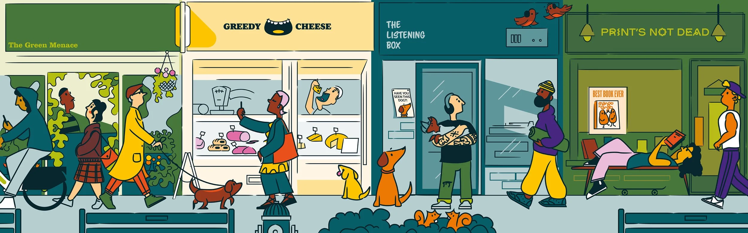 An on-going illustration interpreting street life, a simple view on humans going about their day.